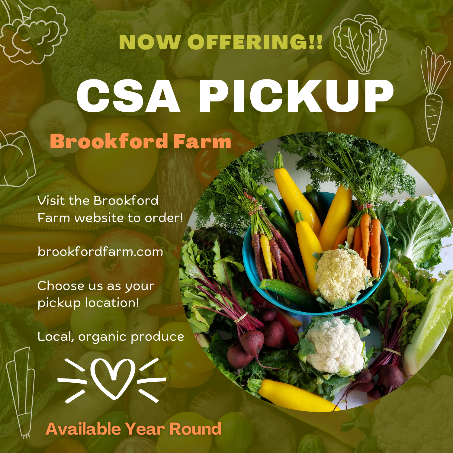 We’re thrilled to partner with Brookford Farm and to serve as an official CSA pickup location at Goffstown Green Thumb Garden Center!
